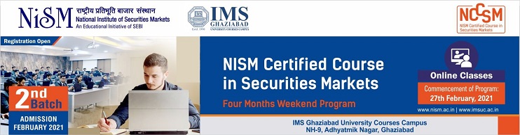 NISM Certified Course in Securities Markets (NCCSM) with IMS Ghaziabad.