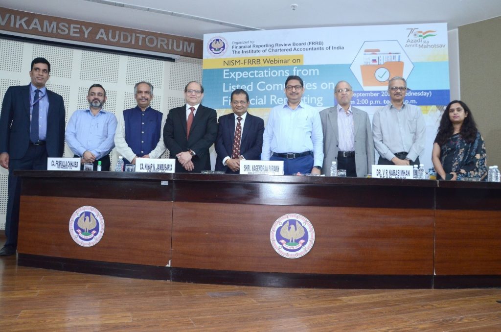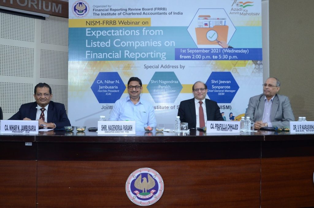 The School for Corporate Governance (SCG) of National Institute of Securities Markets (NISM) and Financial Reporting Review Board (FRRB) of the Institute of Chartered Accountants of India (ICAI) conducted a Webinar on Expectations on Financial Reporting on Wednesday September 01, 2021 at ICAI Bhavan, BKC, Mumbai.